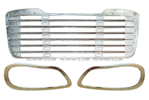3 Pieces Combo - Freightliner M2 Grille with Headlight Bezel Chrome Pair - Driver and Passenger Side PBP 33-103-SS