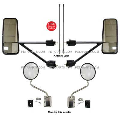 Door Mirror Power Heated Black with Arm and 8" Hood Mirror - Driver and Passenger Side (Fit: Kenworth T660 T600 T370 T270 T170 T800 T470 T440) PBP 35-058-SS1